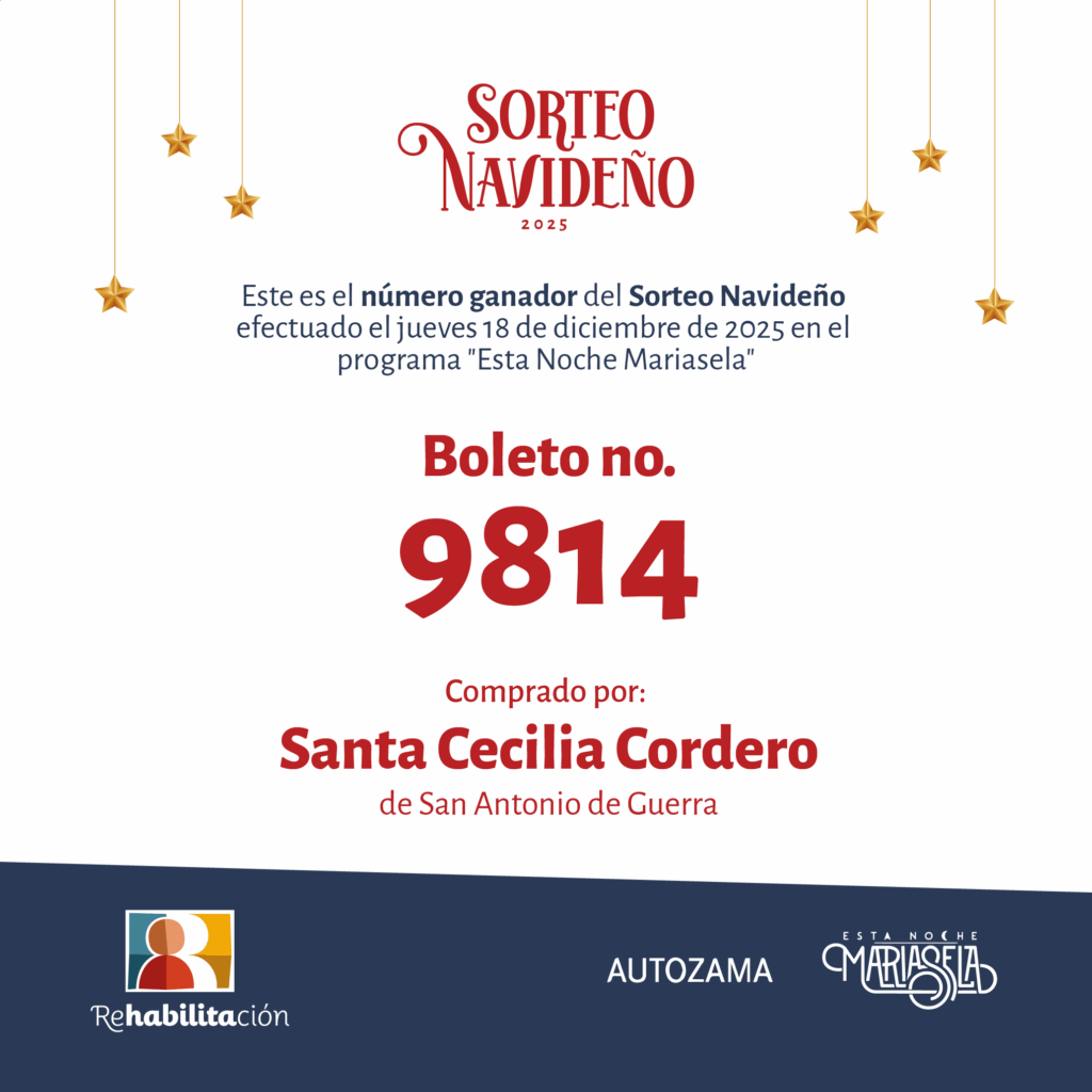 El sorteo se efectuará en vivo, el miércoles 17 de diciembre, en el programa Esta Noche Mariasela a las 8:00 de la noche, por Color Visión, canal 9.